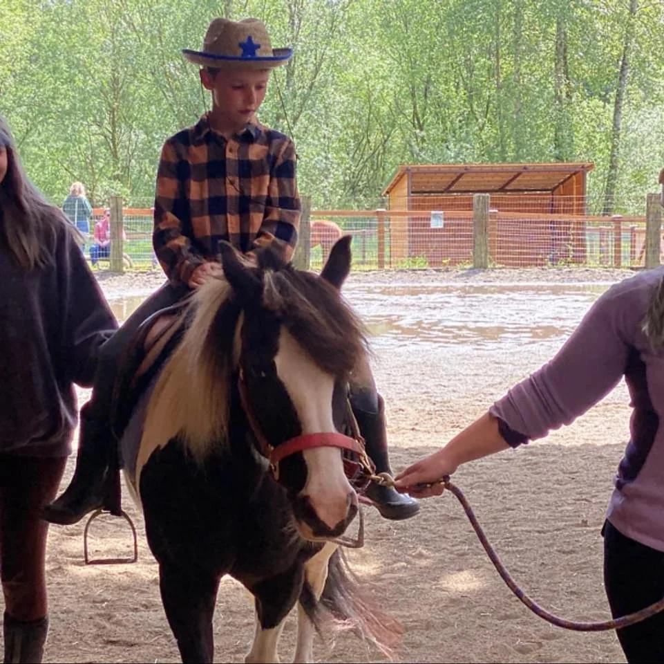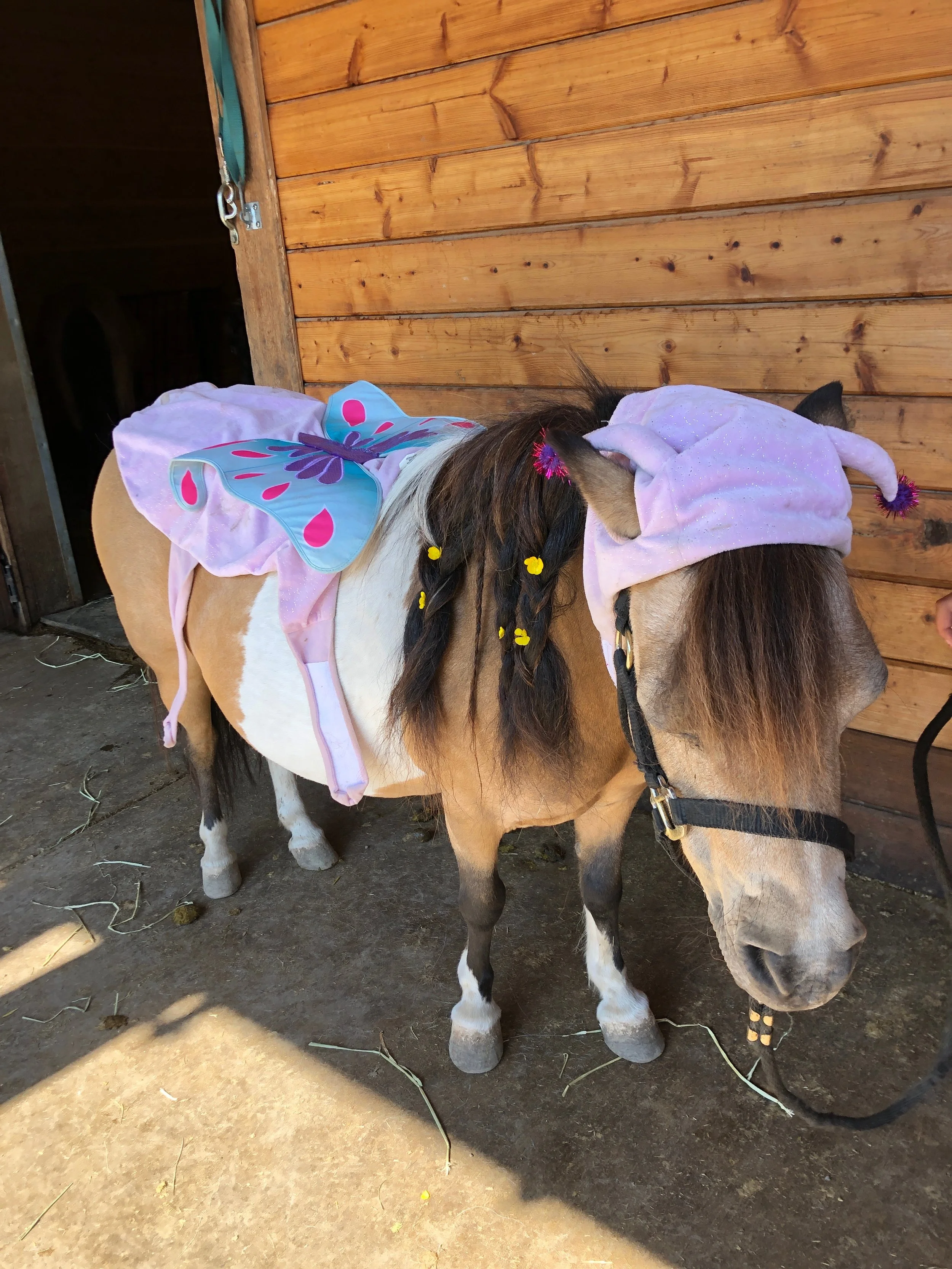 We have a dedicated glamorous ‘Party Saloon’! We also have a large, covered arena right outside the party room and can operate rain or shine! You can park right at the private entrance to the party room, so no hauling supplies up the hill.