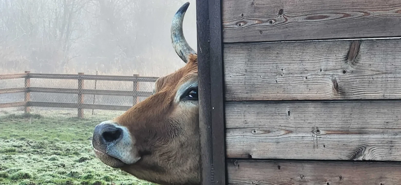 Texas, affectionally known as Tex, is a Texas Longhorn cow. He is about 7 years old and has been with us since he was a baby. He quickly bonded with Toby, our Hereford cow, and they have been buddies ever since. He is a big boy and his horns may look intimidating but heβs a softie at heart, often nudging volunteers for some attention.